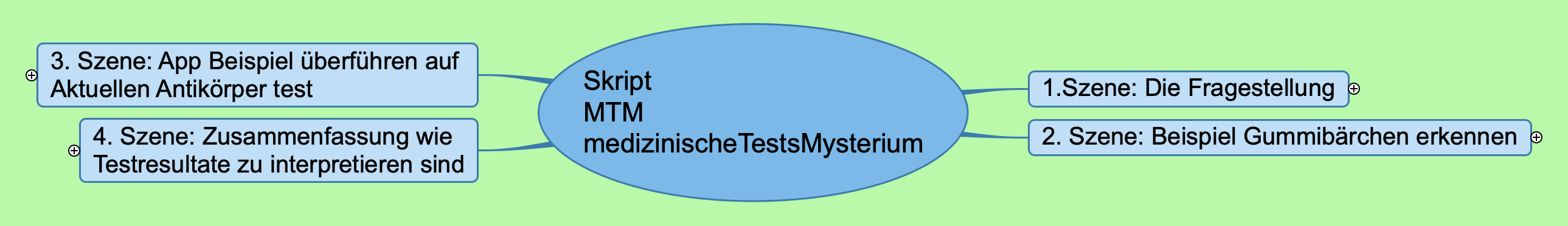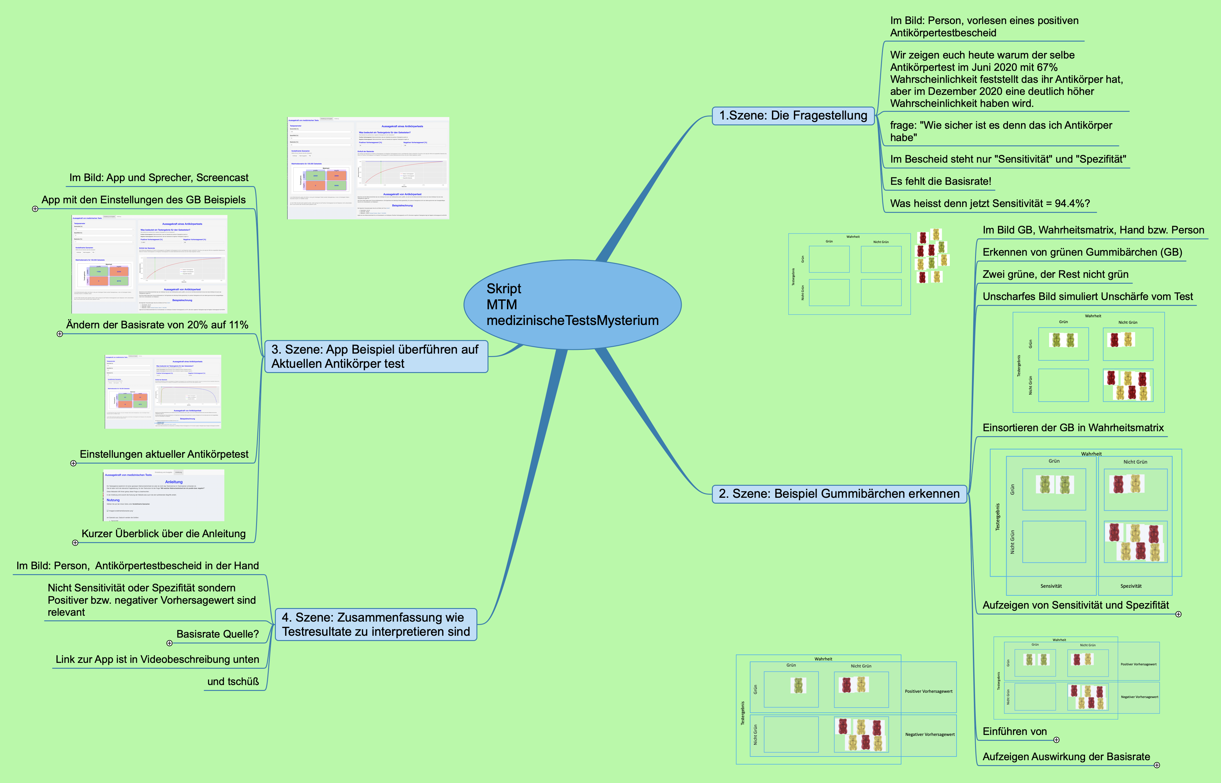 Wenn in meinem Kopf die Gedanken schwirren, hilft es mir diese in eine Mindmap zu ordnen Nach langen Diskussionen mit Ärzten, Krankenschwestern und Freunden entstand ein Drehbuch mit 4 Szenen.